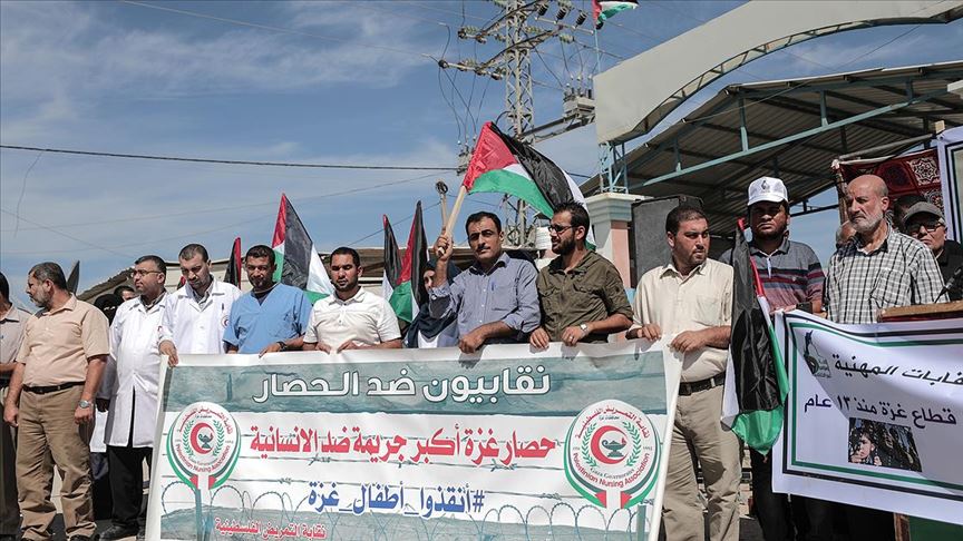 Gazze'deki Büyük Dönüş ve Ablukayı Kırma Yürüyüşü Yüksek Ulusal Komitesinin çağrısı üzerine Beyt Hanun Sınır Kapısı önünde toplanan onlarca sendika üyesi, İsrail'in 13 yıldır sürdürdüğü Gazze ablukasının sona ermesini istedi.