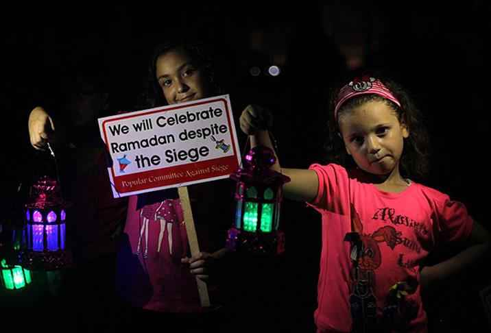 “Ablukaya rağmen ramazan ayını kutlayacağız” adı altında düzenlenen eylemde, ellerinde fener bulunan Gazzeli çocuklar, “insan zinciri” oluşturarak, 8’inci yılına giren İsrail’in Gazze Şeridi’ne uyguladığı ablukayı protesto etti.
