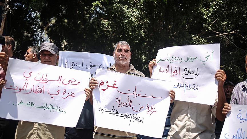 Göstericiler adına basın açıklaması yapan İyad el-Megari, yıl başından bu yana yurt dışına sevk işlemlerinin durdurulması sonucu Gazzeli 14 hastanın hayatını kaybettiğini belirtti.