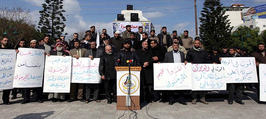 Gazze'deki Filistin hükümeti İçişleri Bakanlığı, Suriye'nin başkenti Şam'da Filistinlilerin barındığı Yermuk Mülteci Kampı'na yönelik ablukanın kaldırılması talebiyle eylem düzenledi.