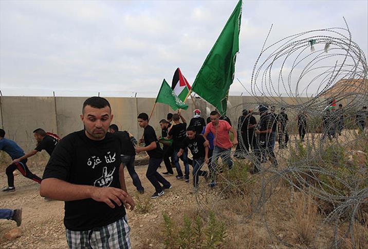 Siyah tişört giyen göstericiler Gazze ve Filistin direnişini destekleyen sloganlar attı. Göstericileri plastik mermi ve göz yaşartıcı gazla dağıtan İsrail askerleri bir Filistinli genci gözaltına aldı, saldırıda 3 Filistinli yaralandı.
