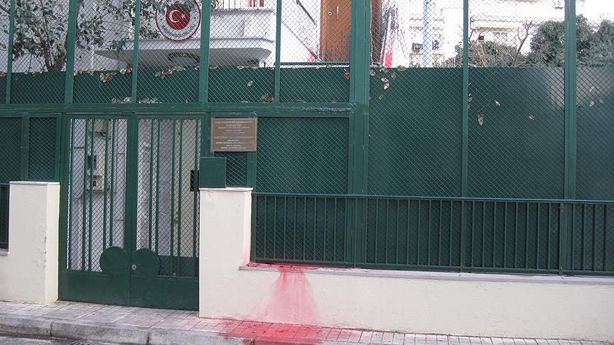 Yunanistan’da, Türkiye’nin Gümülcine Başkonsolosluğu’nun dış duvarlarına ve avlusuna bir grup tarafından boya şişeleri atıldı.