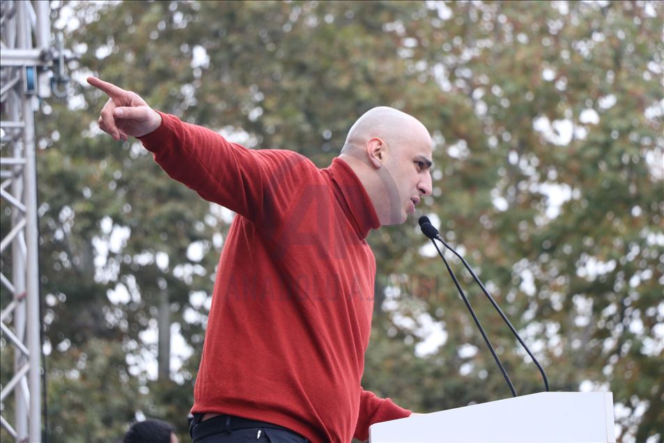 Burada bir konuşma yapan ana muhalefet partisi Birleşik Ulusal Hareketi'nin liderlerinden Nika Melia, hükümetin muhalefetin taleplerini yere getirmediği sürece sokaklardaki protesto gösterilerinin süreceğini belirtti.