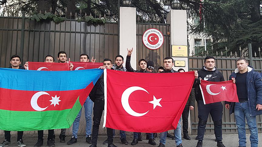 Gazetecilere açıklama yapan göstericilerden Anar Nurmamedov, "Burada bir araya gelmemizin sebebi kendi sınırlarını teröristlerden temizlemek için terör karşıtı harekatı başlatan Türkiye'ye destek vermektir." dedi.