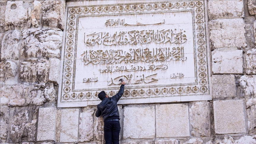 Suriye'nin devrik lideri Beşşar Esed'in babası Hafız Esed'in, başkent Şam'daki Emevi Camisi'nin duvarında bulunan mermer levhaya işlenmiş ismi çekiçle kazındı.