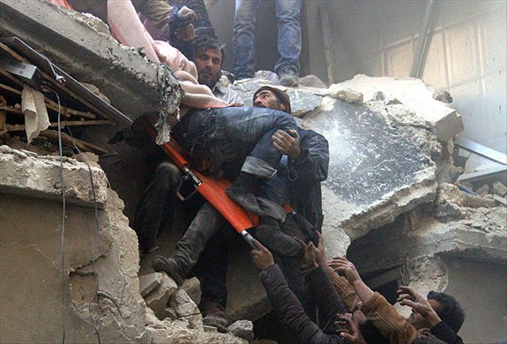 Suriye'nin Halep kentinin Bezaa beldesine "varil bombalarıyla" düzenlenen hava saldırılarında 8'i çocuk 16 kişinin hayatını kaybettiği, 30 kişinin yaralandığı bildirildi.
