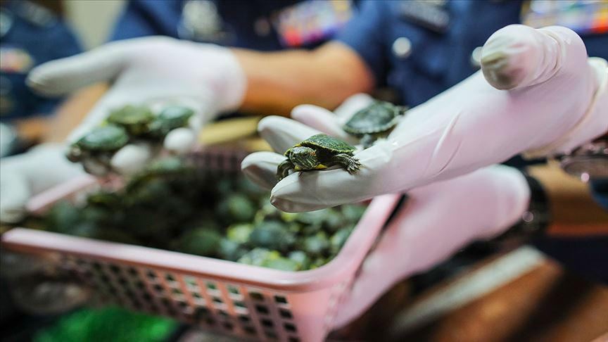 Malezya Polis Teşkilatının gümrük biriminden yapılan açıklamada, Kuala Lumpur Uluslararası Havalimanı'nda yabancı uyruklu iki kişinin bavullarında yapılan aramada 5 bin 255 kırmızı yanaklı su kaplumbağası bulunduğu belirtildi.