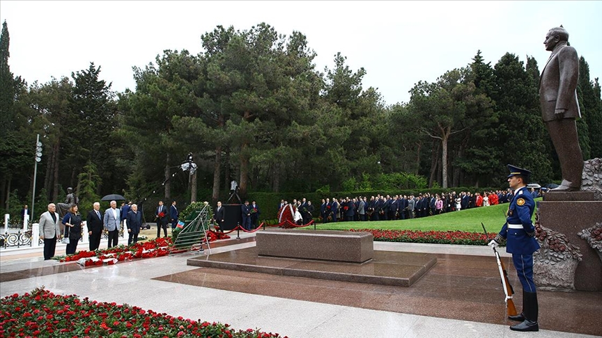 Binlerce Azerbaycanlı, Haydar Aliyev'in mezarını ziyaret ederek çiçek bıraktı.