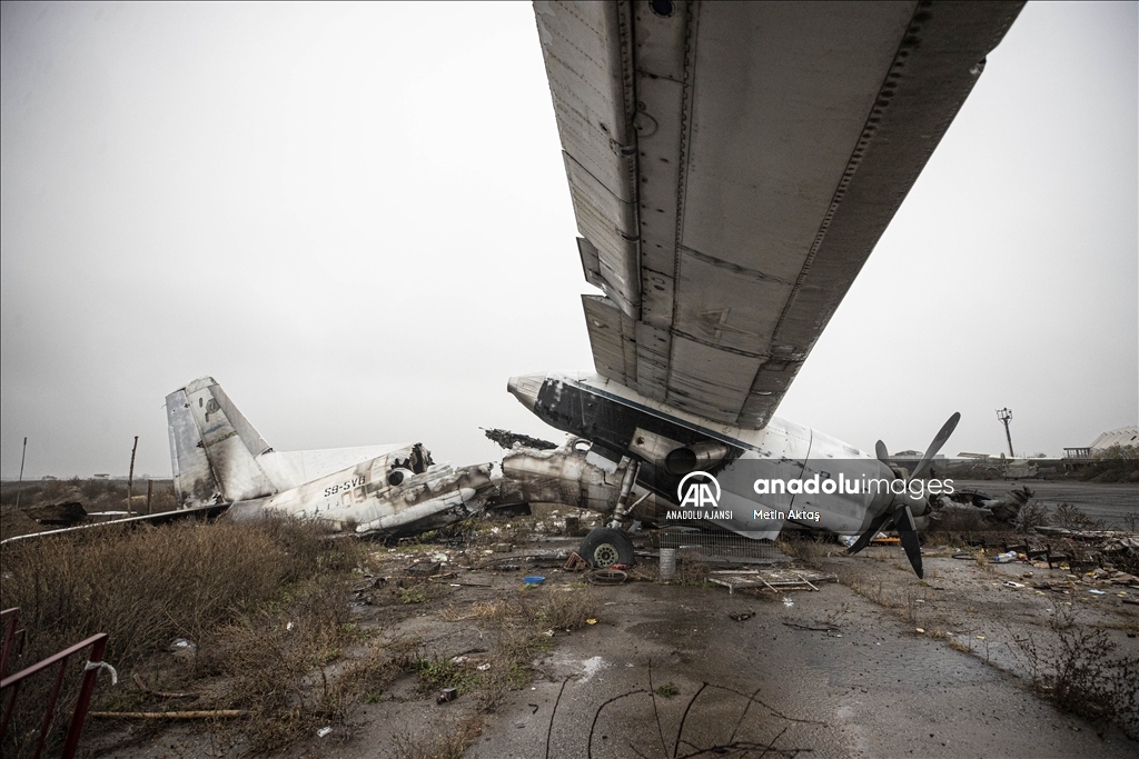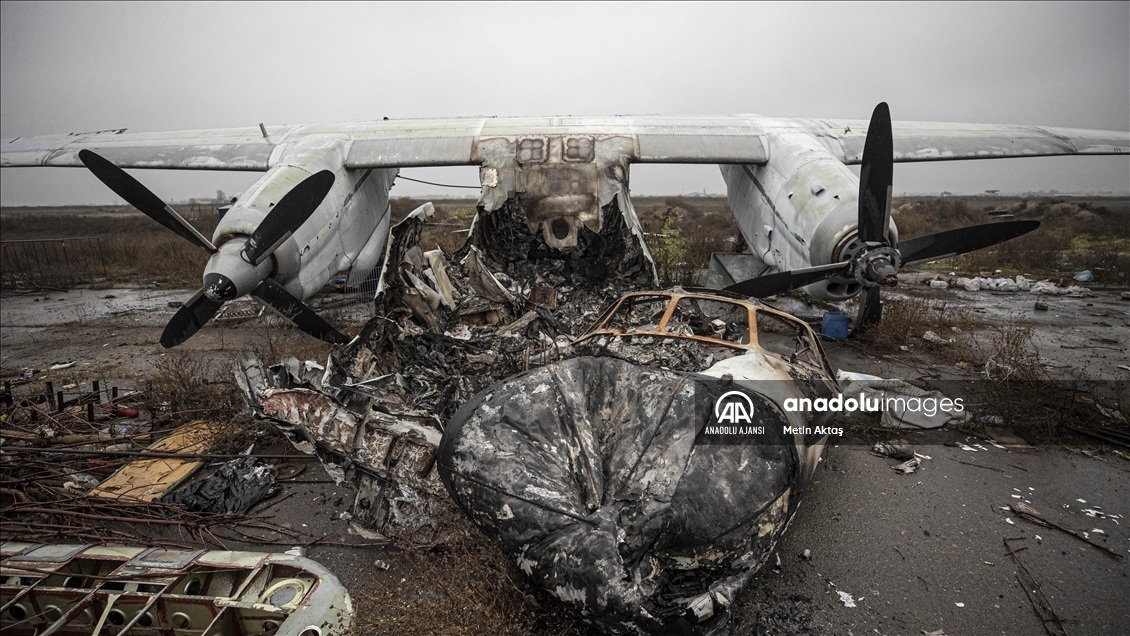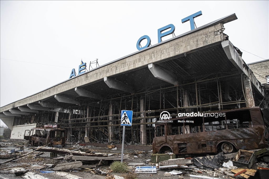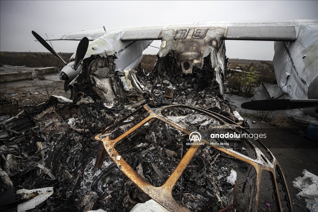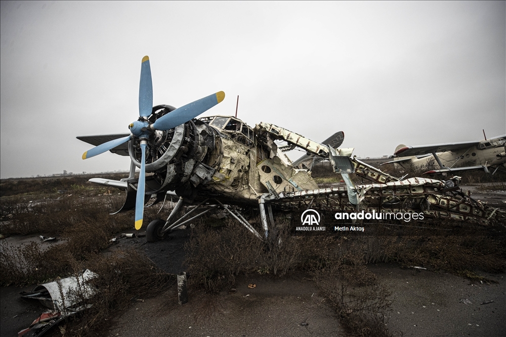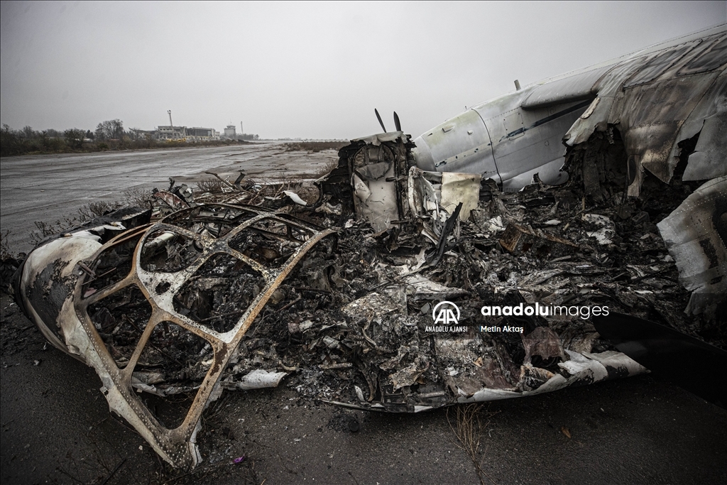 Rus kuvvetlerinin bölgede kaldığı sürede "askeri lojistik merkezi" olarak da kullanıldığı anlaşılan havalimanının, hava savunma sistemi radarları, tank, zırhlı ve askeri personel taşıyan araçların yanı sıra çok sayıda uçağın parçalarının yer aldığı harabeye döndüğü dikkati çekiyor.
