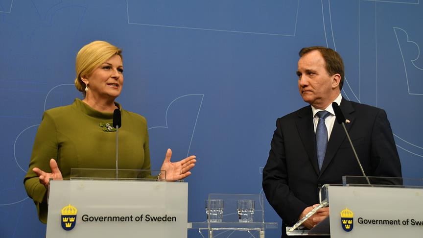 Kitarovic, resmi temaslarda bulunmak üzere geldiği İsveç'in başkenti Stockholm'de, Başbakan Stefan Löfven ile görüştü.
