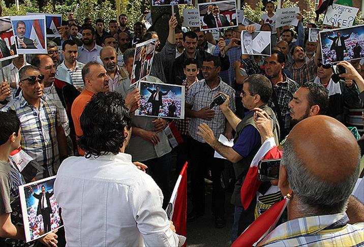 Polisin yoğun güvenlik önlemleri aldığı gösteride Mısır’da gerçekleşen darbe aleyhinde sloganlar atılarak, ülkenin seçilmiş ilk cumhurbaşkanı Mursi’ye görevinin iade edilmesi istendi. Ellerinde Mursi’nin posterleri ve darbe karşıtı dövizler taşıyan grup, askeri müdahale sonrasında hayatlarını kaybedenler için dua etti.
