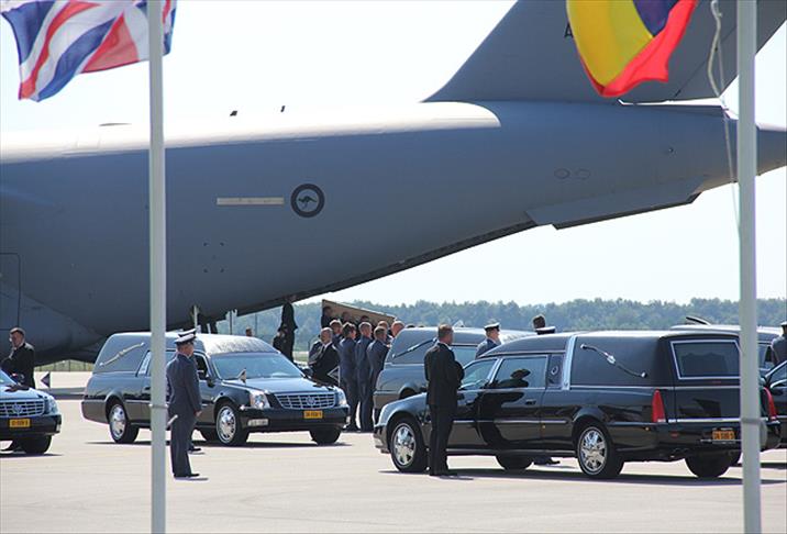 Hollanda ve Avustralya’ya ait 2 askeri nakliye uçağıyla Eindhoven Havaalanı’na getirilen 40 kişinin cenazeleri için düzenlenen törene Kral Willem Alexander, eşi Kraliçe Maxima, Başbakan Mark Rutte ve Başbakan Yardımcısı Lodewijk Asscher’in yanı sıra üst düzey sivil ve askeri yetkililerle kurban yakınları ve kazada vatandaşlarını kaybeden diğer ülke temsilcileri katıldı.