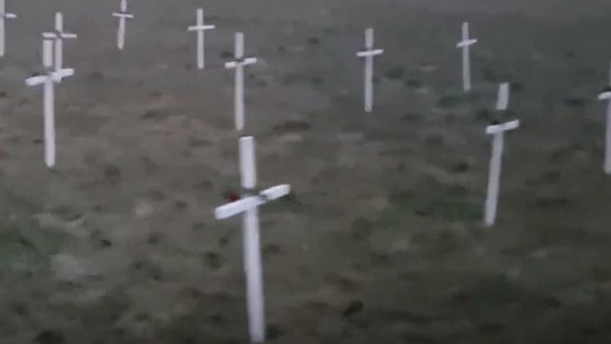 PEGIDA üyesi grubun sosyal medya üzerinden paylaştığı görüntülere göre, grup, cami yapılması planlanan alana 23 haç dikerek mezarlık görüntüsü verdi.
