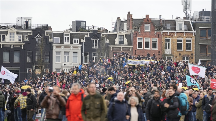 "Hollanda direniyor" kuruluşu, başkent Amsterdam'daki Müzeler Meydanı'nda Kovid-19 kısıtlamalarını protesto için yürüyüş düzenledi.