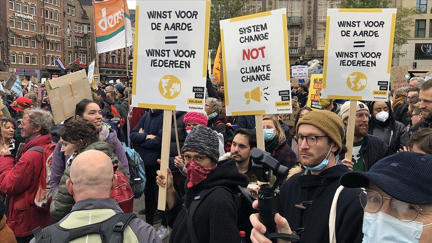 Çeşitli sivil toplum kuruluşlarının desteğiyle organize edilen "İklim Yürüyüşü 2021" kapsamında ülkenin farklı kentlerinden gelen yaklaşık 40 bin kişi kentin Dam Meydanı'nda bir araya geldi.