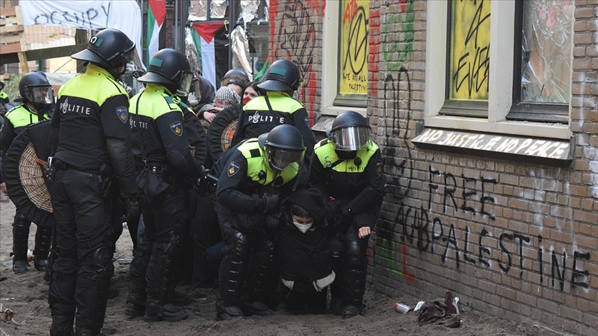 Hollanda'da Amsterdam Üniversitesi (UvA) ve Utrecht Üniversitesinde başlayan eylemlere polis sert şekilde müdahale etti.