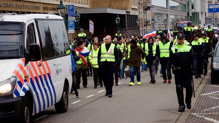 Hollanda'daki "sarı yelekliler", sosyal medyadan yapılan çağrılar üzerine Lahey ve Rotterdam'ın yanı sıra çeşitli kentlerde toplandı.