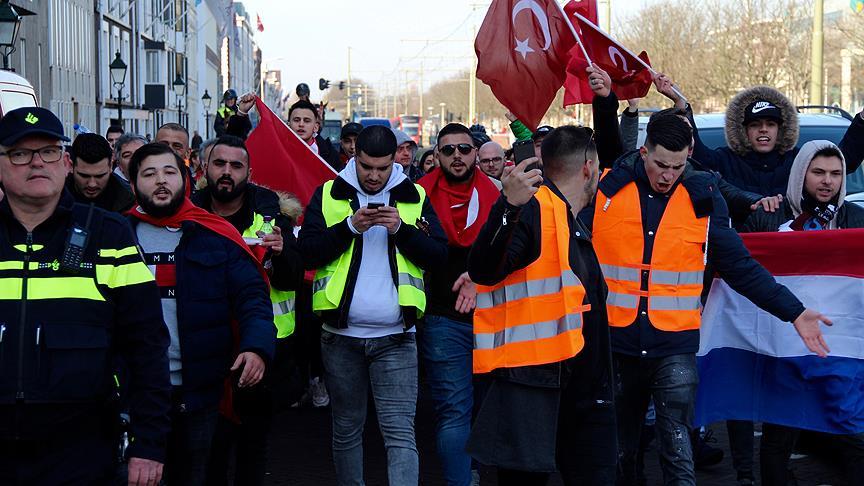 Hollanda'nın Lahey kentinde Türk Silahlı Kuvvetlerinin Afrin'de yürüttüğü Zeytin Dalı Harekatı'na destek vermek amacıyla ”TSK’ye destek, PKK’yı protesto” yürüyüşü düzenlendi.