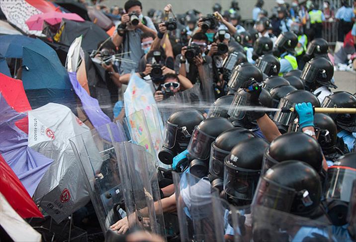 Şinhua ajansı, Hong Kong'da devam eden protestoların kent merkezindeki ana yolların kapanmasına, okullarda derslerin ertelenmesine ve birçok yerde trafiğin aksamasına neden olduğunu duyurdu.