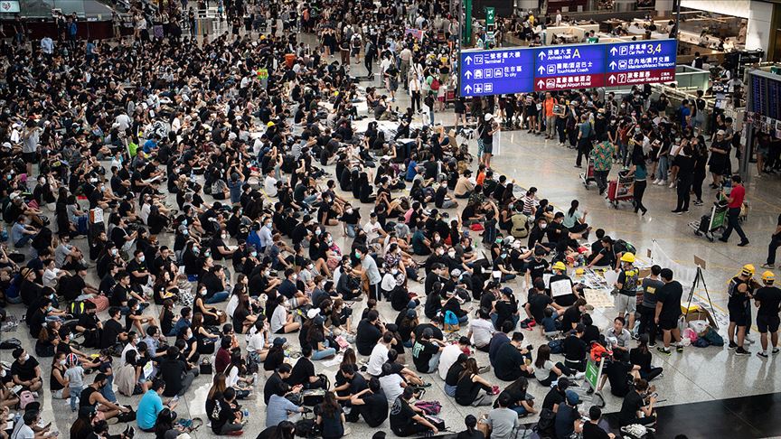 Çin'in Hong Kong Özel İdari Bölgesi'nde suçluların Çin'e iadesi tasarısına karşı Hong Kong Uluslararası Havalimanı'nda gösterilerine devam eden protestocular ile polis arasında çatışma çıktı.