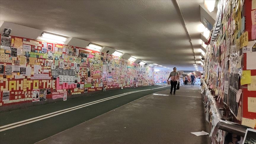 Hong Kong'un kuzeybatı tarafında bulunan ve metro ağının Tai Po Market durağı çıkışındaki tünellerde, protestocuların talepleri, tepkileri ve benimsedikleri hükümet karşıtı tutumlarını yansıtan çıkartmalar, afişler, anime çizimleriyle dolmuş durumda.