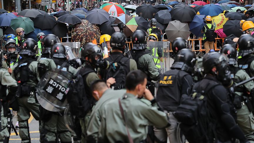 Hong Kong'da polis, geçen hafta sonu göstericilerin maskeli kişiler tarafından saldırıya uğradığı Yuan Long bölgesinde dün yürüyüş düzenleyenlere göz yaşartıcı gazla müdahale etmişti.