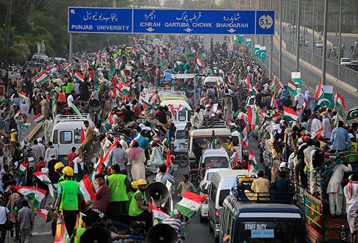 Lahor kentinde başlayan hükümet karşıtı gösterilerde, iki protestocu grup Lahor'un merkezinde birleşerek başkent İslamabad'a birlikte ilerledi.