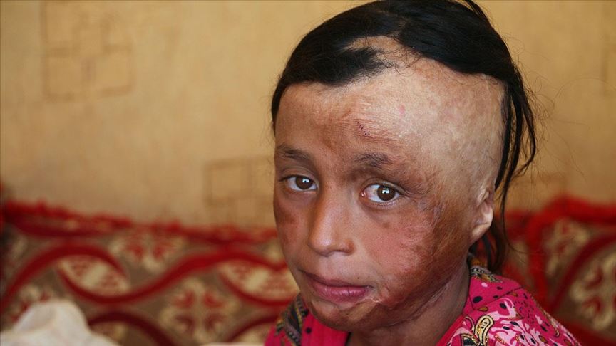 Bir diğer savaş mağduru da 4 yıl önce rejimin İdlib'in Rif eş-Şarki köyüne düzenlediği hava saldırısında yüzü ve vücudunun farklı yerleri yanan 7 yaşındaki kız çocuğu İntisar oldu.