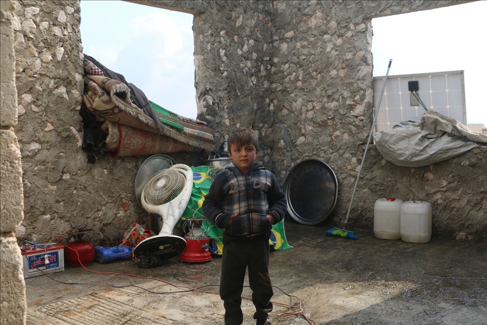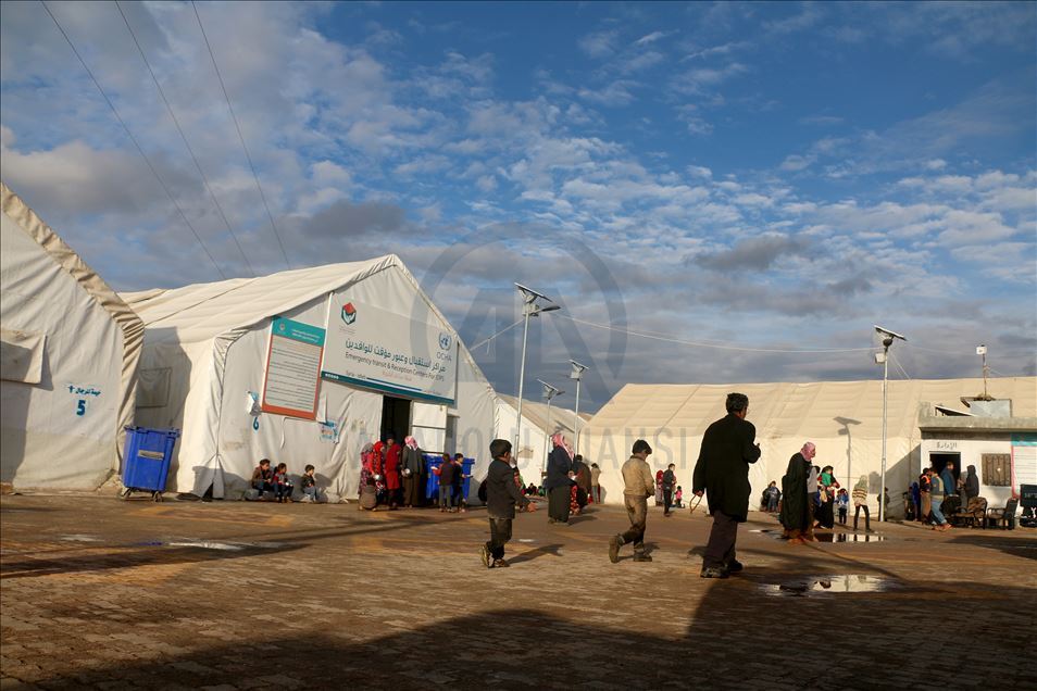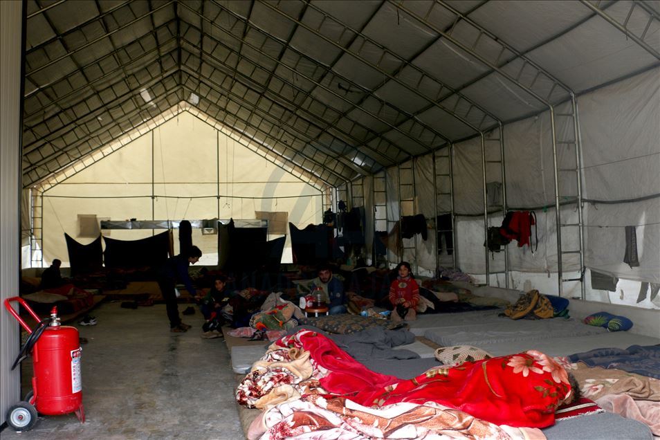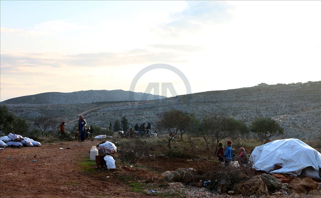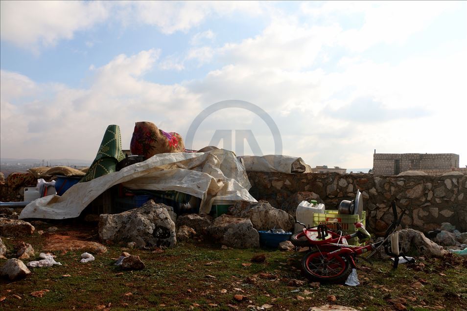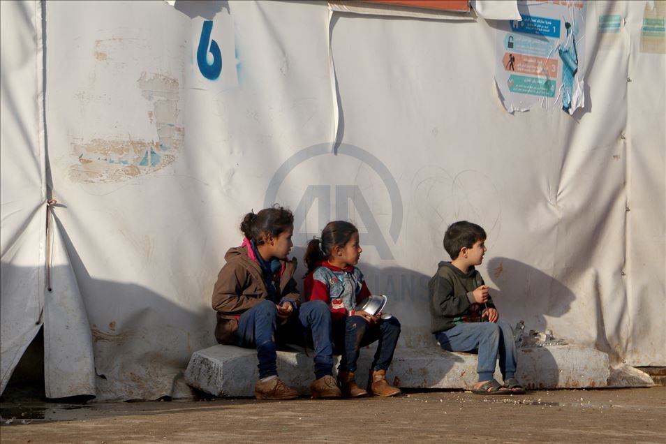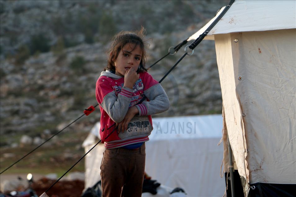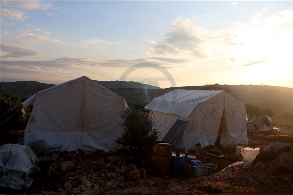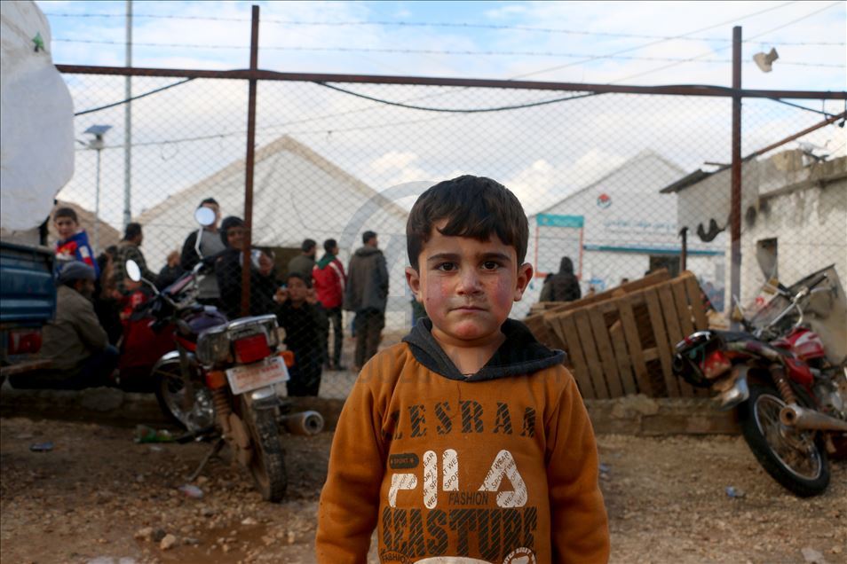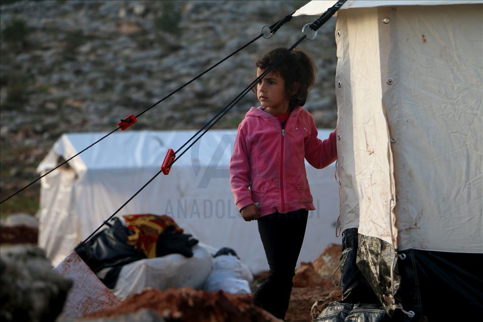 Suriye'de Beşşar Esed rejimi, Rusya ve İran destekli yabancı terörist grupların İdlib'deki yerleşimlere yoğun saldırıları yüzünden bir milyondan fazla sivil, göç ederek evsiz kaldı. Türkiye sınır hattına ulaşan siviller, buradaki sığınmacı kamplarında yer bulmakta güçlük çekerken, geçici barınma merkezleri de dolmuş durumda. Maret El İhvan köyündeki yer alan geçici barınma merkezi ve çevresine barınan siviller, zor şartlarda yaşamlarını sürdürüyor. ( Muhammed Abdullah - Anadolu Ajansı )