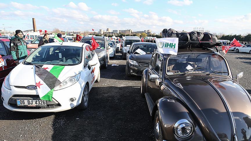 İstanbul'dan yola çıkan yardım konvoyundaki gönüllüler, sırayla Sakarya, Ankara, Konya'dan geçerek Nevşehir'de 15 Temmuz şehidi astsubay Ömer Halisdemir'in kabrini ziyaret edecek, ardından Adana'nın Pozantı ilçesinde diğer illerden gelen konvoylarla bir araya gelecek.