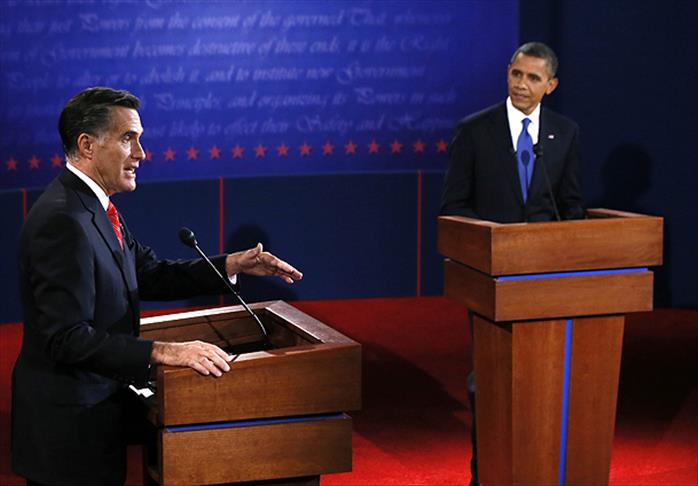 Obama ve Romney, sahneye güler yüzle gelerek el sıkıştı. Moderatörün soru sormaktan çok, iki adayın karşılıklı ''kapışmasına'' izin verdiği tartışmada, Obama 42.50 dakika, Romney ise 38.32 dakika konuştu.