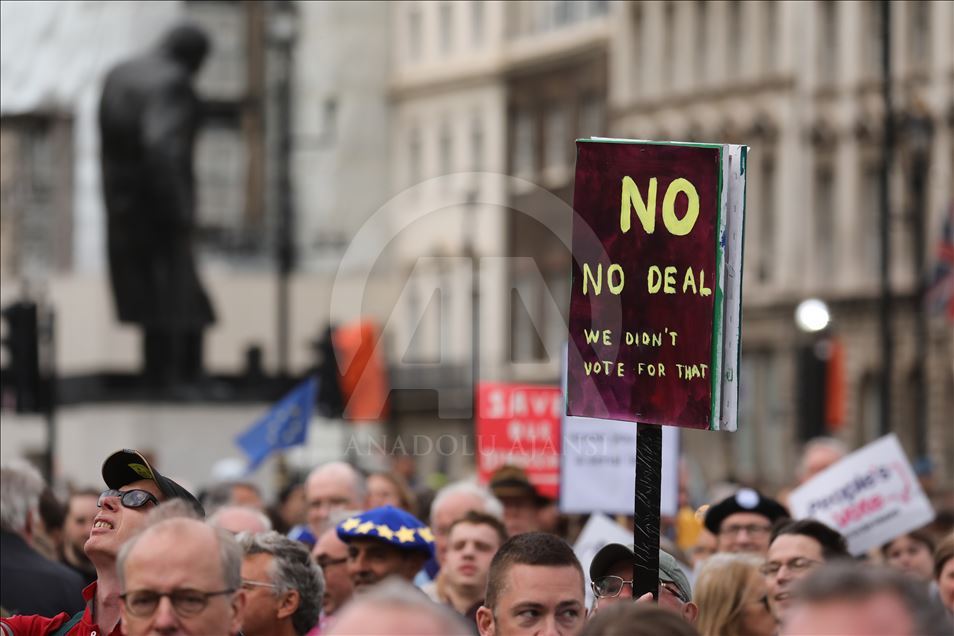 İngiltere'nin başkenti Londra'daki Parlamento Binası önünde, AB bayrakları ve pankartlarla Brexit karşıtı gösteri düzenlendi. ( Isabel Infantes - Anadolu Ajansı )
