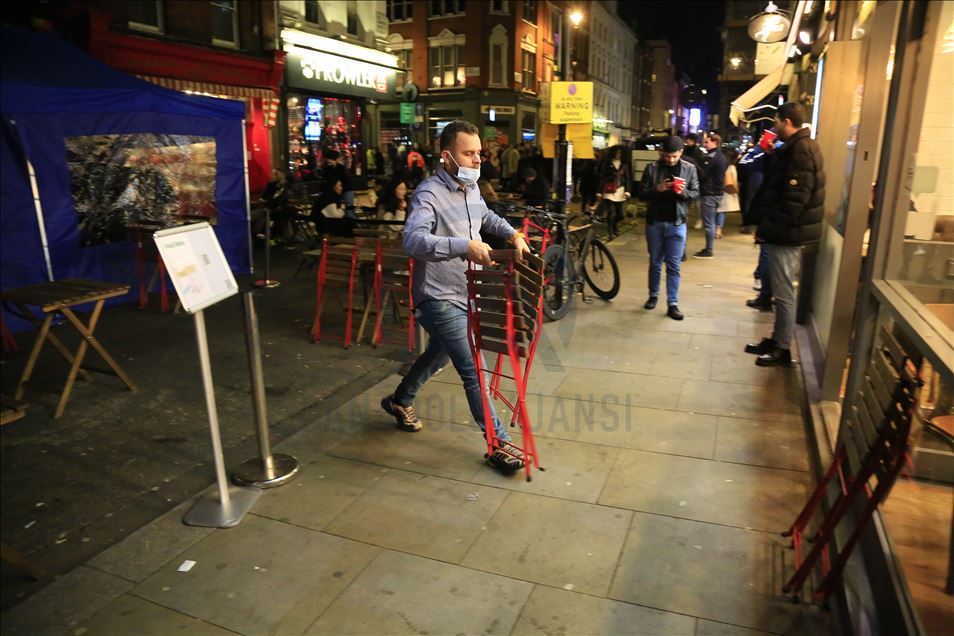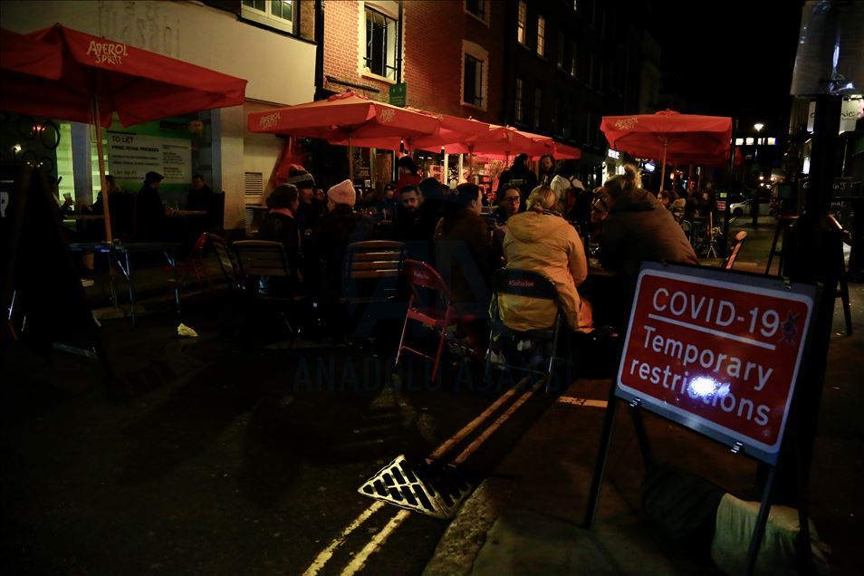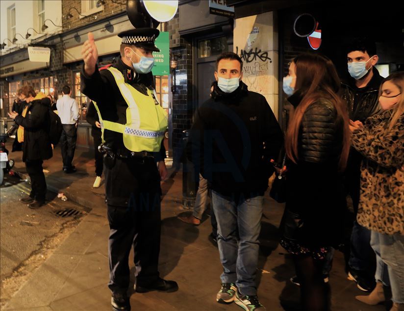 Barların kapatılmasının ardından gençler, başkent Londra'nın eğlence mekanı Soho'da sokaklarda eğlenmeye devam etti.