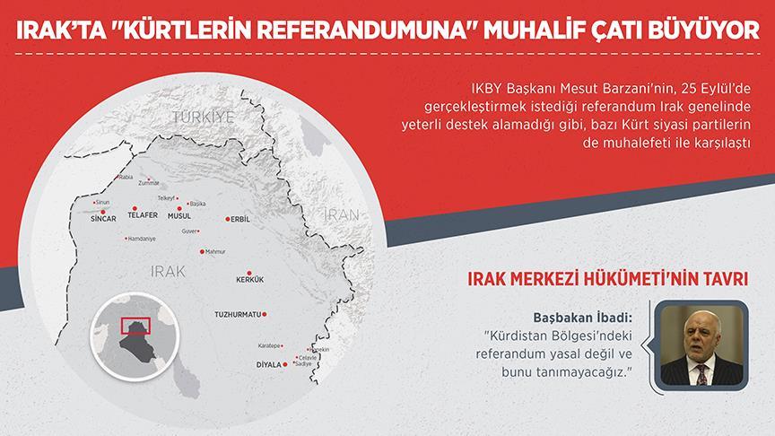 Irak Kürt Bölgesel Yönetimi (IKBY) Başkanı Mesut Barzani'nin, 25 Eylül'de gerçekleştirmek istediği referandum Irak genelinde yeterli destek alamadığı gibi bazı Kürt siyasi partilerin de muhalefeti ile karşılaştı.