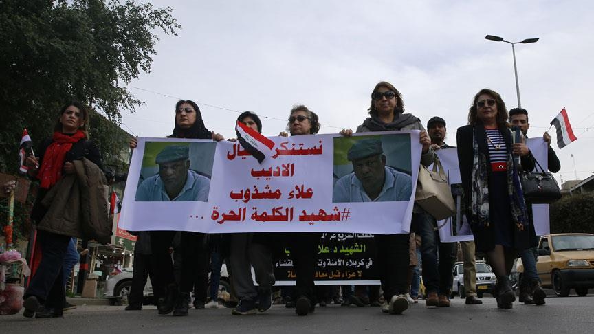 Iraklı romancı ve aktivist Ala Meşdub, 2 Şubat'ta Kerbela kentindeki evinin önünde kimliği henüz tespit edilemeyen kişilerin silahlı saldırısına uğrayarak hayatını kaybetmişti.