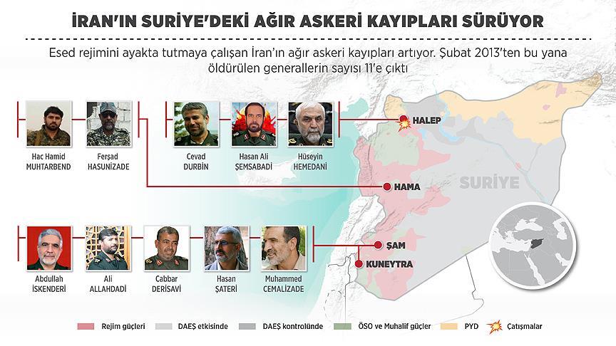 Beşşar Esed rejimi için savaşmak üzere Suriye'ye ordu ve özel kuvvetler mensuplarını sevk eden İran'ın ağır askeri kayıpları artıyor. Şubat 2013'ten bu yana öldürülen generallerin sayısı 11'e çıktı.
