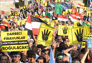 "İzzetine, onuruna düşkün olan Arap halkları, Müslüman halklar, yönetimlerini meşrulaştırmak, onurlu, refahlı bir hayat sürmek için ayağa kalktı. Bu ayağa kalkışı, devrimleri, dönüşümü engellemek için gerek bazı Batılı odaklar gerekse bunların yerel uzantıları, yani eski rejimlerin kalıntıları, İslam dünyasındaki çıkarlarının zedelendiğini gördükleri için bu uyanışı ittifakla boğmak, devrimleri geri çevirmek istedi. Amaç; Suriye duvarına gelip duran Arap dalgası henüz neticelenmemişken Mısır'daki devrimi duraklamaya uğratıp aslında tüm devrimleri boğmaktı. Bu, beklenmedik bir şeyle karşılaştı. Mısırlıların olağanüstü direnişi ve İslam dünyasındaki halkların, toplumların fevkalade bir şuur uyanıklığıyla ve bir nevi dirilişiyle beklenmedik bir harekete dönüştü."