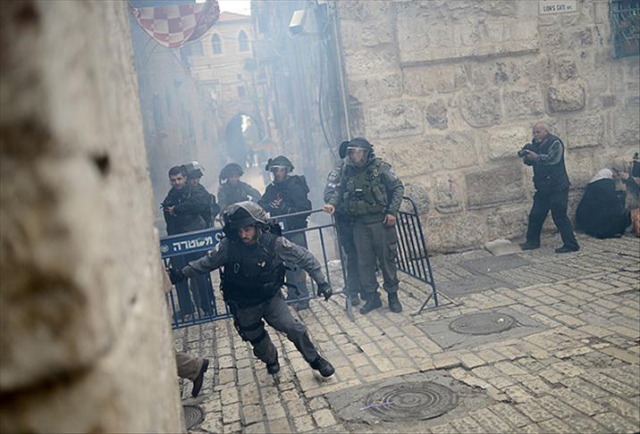 Öte yandan Aksa avlusunun kapılarını tutan İsrail askerleri ile Filistinliler arasında gerginlik devam ediyor. Yasağı protesto eden Filistinlilere askerler zaman zaman göz yaşartıcı gaz, ses bombası ve plastik mermi ile müdahale ediyor.
