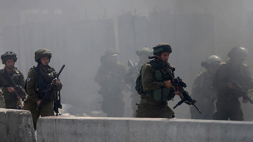Filistinli gençler de İsrail askerlerine taş, molotofkokteyli atarak ve lastik yakarak karşılık verdi.