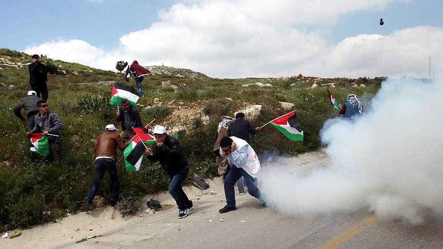İsrail askerleri, Filistin bayraklarının taşındığı ve işgalin bitirilmesi için sloganların atıldığı gösteriye, gerçek, plastik mermi ve göz yaşartıcı gaz kullanarak müdahale etti.