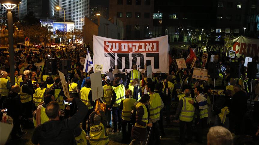 Başkent Tel Aviv'de toplanan yaklaşık 300 "sarı yelekli" protestocu, hayat pahalılığı nedeniyle hükümeti hedef alan sloganlar attı.