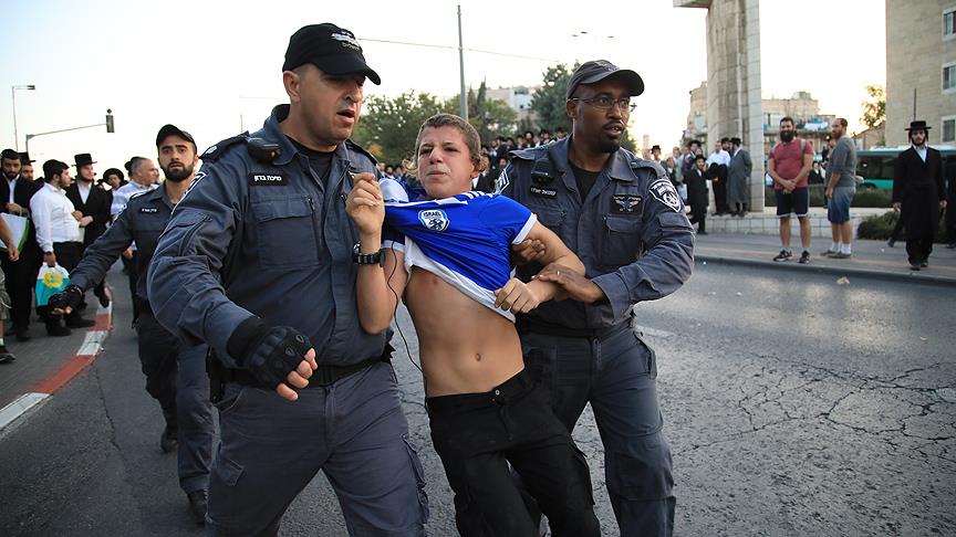 Kudüs'te yüzlerce kişinin katılımıyla düzenlenen zorunlu askerlik karşıtı gösterilere müdahale eden İsrail polisi 11 Yahudi'yi gözaltına aldı.