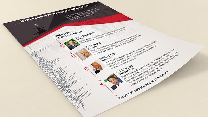 2011 yılında, Silvio Berlusconi liderliğindeki merkez sağ hükümeti, 2012’de ise Mario Monti liderliğindeki teknokrat hükümet istifa ederken, 2013’te olağan genel seçimlerin ardından uzun süre hükümet kurulamaması, 2014’te Enrico Letta liderliğindeki koalisyon hükümetinin istifası ve son olarak 2016’da anayasa referandumunda alınan yenilgi sonrası gelen Renzi’nin istifası son yıllardaki siyasi istikrarsızlığı gözler önüne seriyor.