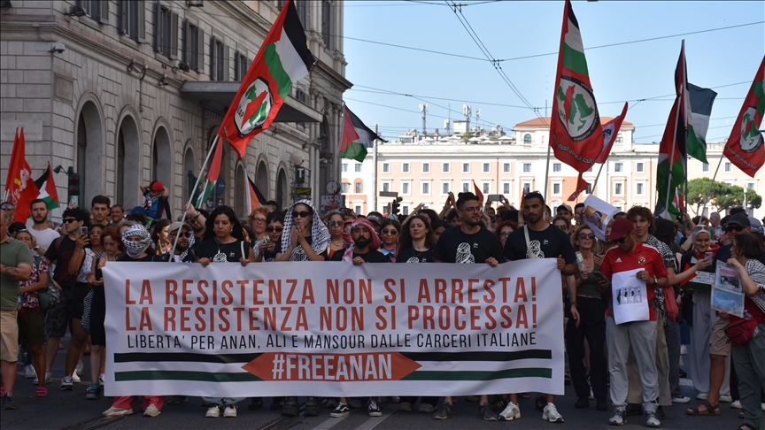 Yürüyüşte ayrıca İtalya'da yaşayan ve Filistin'e destek verdikleri gerekçesiyle tutuklu bulunan Anan Yaeesh ve Mansour Doghmosh'un direnişlerine destek verilip, serbest bırakılmaları talep edildi.
