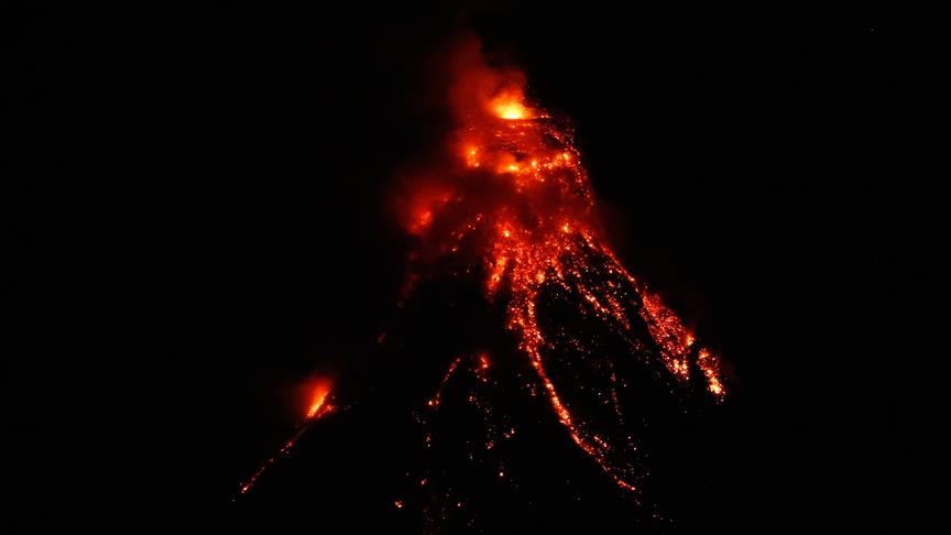 Filipinler'de de dün patlayan Mayon Yanardağı'nın lav ve kül püskürmeye devam ettiği ve bölgeden 40 bin kişinin tahliye edildiği bildirildi.