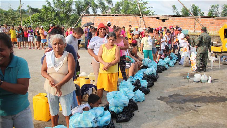 Birleşmiş Milletler, Kızılhaç ve diğer ülkelerden gelerek afetzedelere destek olmak isteyen kuruluşlar, yıkımın yaşandığı şehirlerde oluşturulan afet koordinasyon merkezinin desteğiyle yardımlarını dağıtıyor. Yardımların dağıtımında, Ekvador polis ve askeri teşkilatları yardımcı oluyor.