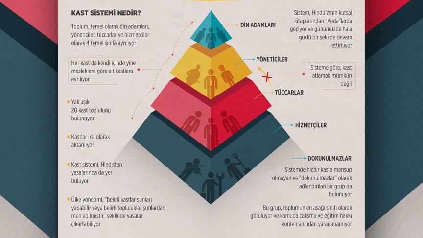 Hindistan'da asırlardır uygulanan kast sisteminin kökenlerinin binlerce yıl öncesine dayandığı düşünülüyor. Nesilden nesile aktarılan sistemde toplum, temel olarak din adamları, yöneticiler, tüccarlar ve hizmetçiler olarak 4 temel sınıfa ayrılsa da, her kast kendi içinde yine mesleklere göre alt kastlara ayrılıyor. Diğer yandan sistemde hiçbir kasta mensup olmayan ve "dokunulmazlar" olarak adlandırılan bir grup da bulunuyor. Bu grup, toplumun en alt sınıfı olarak görülüyor.