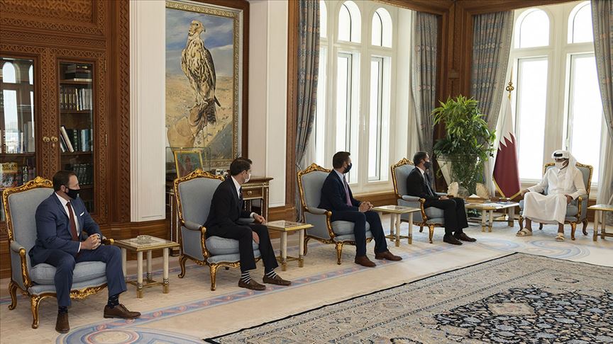 Katar haber ajansı QNA'ya göre Şeyh Temim, ABD Kongre üyeleri Jim Himes, Eric Swalwell, Seth Moulton ve Patrick Murphy ile başkent Doha'da bir araya geldi.