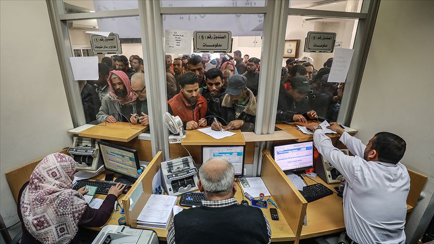 Katar'ın ihtiyaç sahibi aileler için yaptığı nakdi yardımdan istifade etmek isteyen yüzlerce Filistinli, Gazze'nin çeşitli kentlerindeki bankaların önünde toplandı.