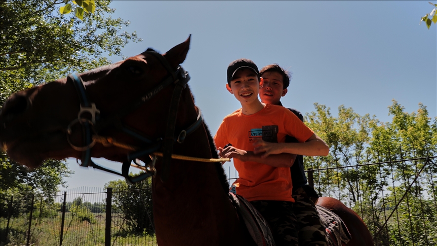 Kazakistan’da otistik, fiziksel ve zihinsel bozukluğu olan çocuklar ata binerek tedavi oluyor.